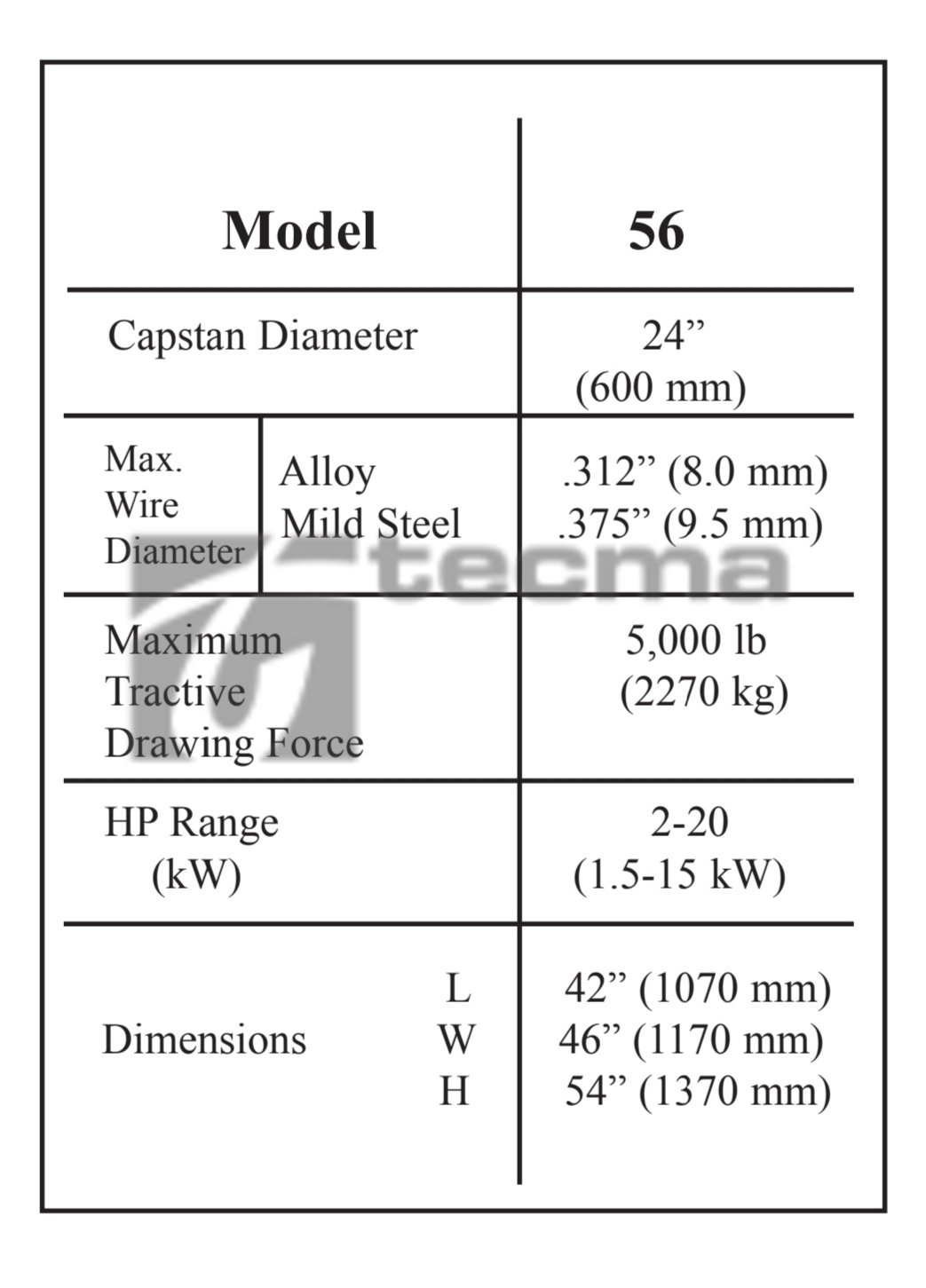 24” (600 mm) Capstan In-Line Wire Drawing Machine. Per ulteriori informazioni, contattare Tecma GmbH