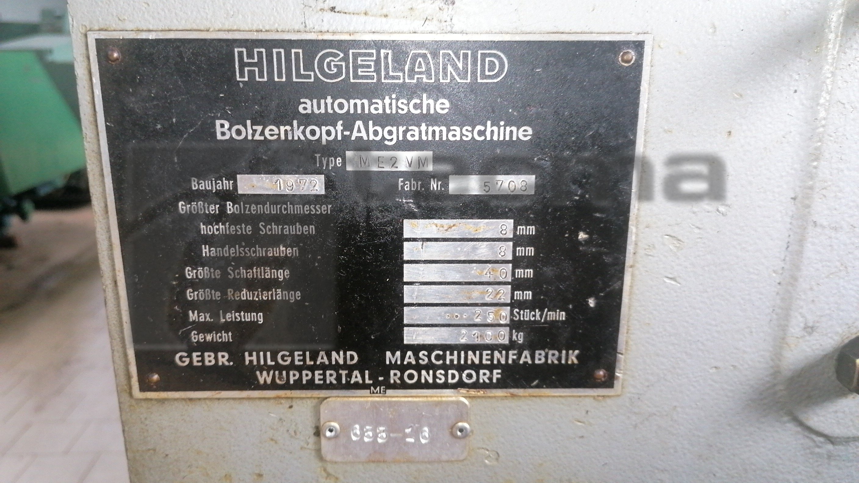 HILGELAND - ME 2V M Automatic Bolt Head Trimming and Reheading Machine